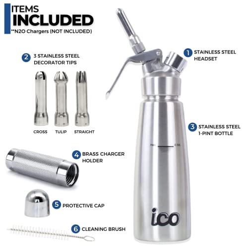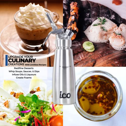 ICO Siphon Chantilly Professionnel Inox 500ml – Cartouche Siphon Chantilly Compatible – Siphon Cuisine pour Desserts, Mousses et Boissons